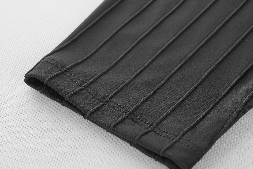 Sleeves are made from aerodynamic striped stretch fabric to minimize air resistance while riding.