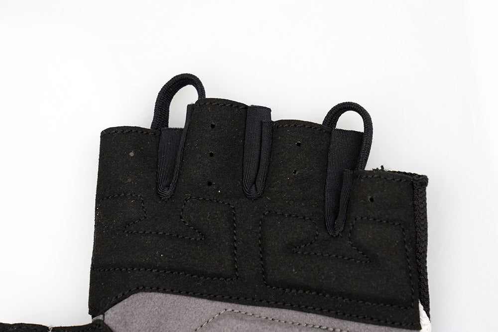 There are 2 finger loops between the index finger and ring finger, pull the finger loops to remove the glove easily.