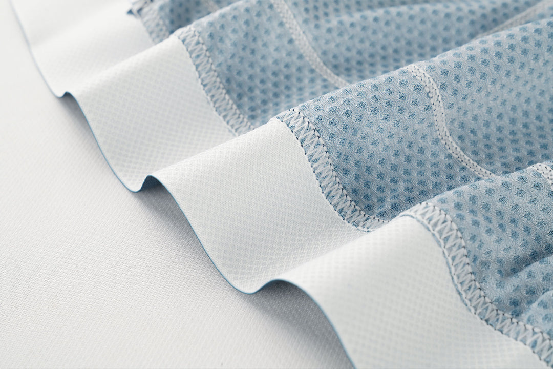 Uneven bubbles on its surface, hence the name. The special bubble structure makes the contact between cloth and the skin become 3D contact, so when wearing you will have strong cooling, breathable and 3D sense. It is more focused on the moisture wicking performance, but also provides SPF30+, good extensibility 4-way stretch and lighter soft.