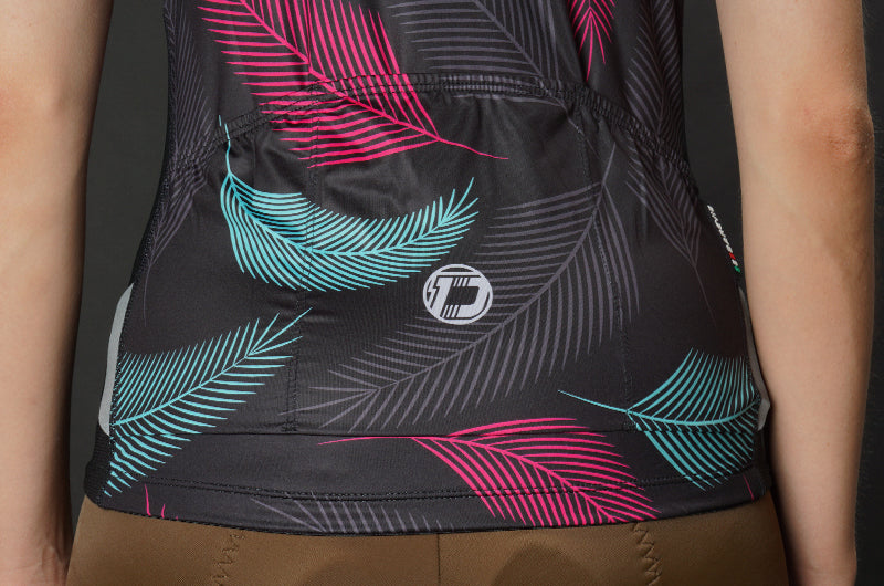 Designed for women, this cycling jersey features eco-friendly milk silk fabric, 3 back pockets for essentials, and an anti-slip hem for a secure fit. With moisture-wicking and quick-drying properties.
