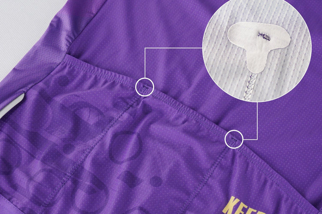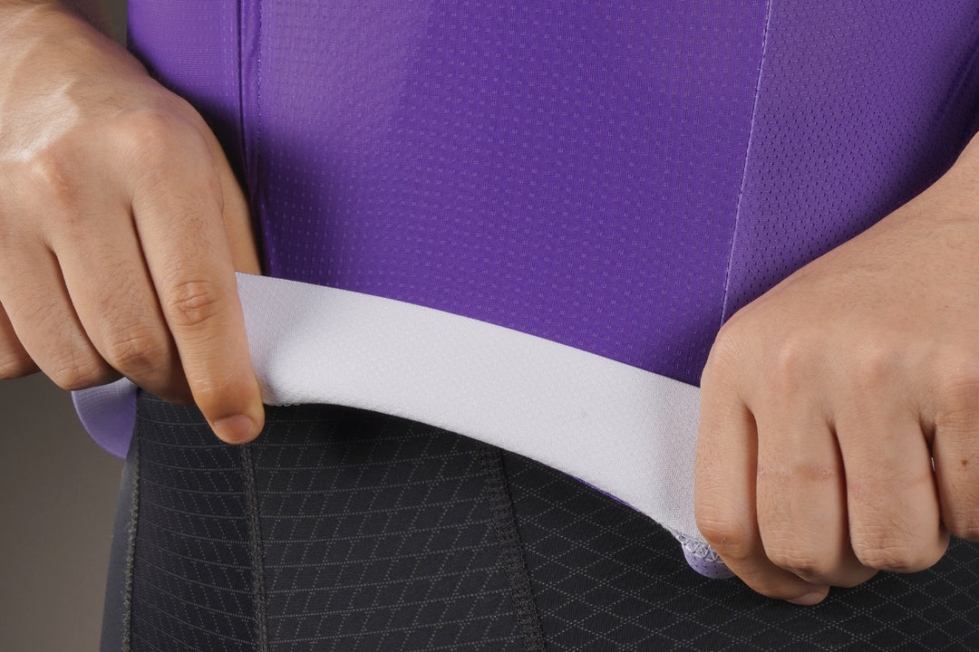Features a high-performance tri-zone fabric design: breathable jacquard main body for moisture-wicking and elasticity, antimicrobial collar/sleeve cuffs for odor resistance and UV protection, and mesh side panels for maximum air permeability, offering comprehensive support for professional cycling.