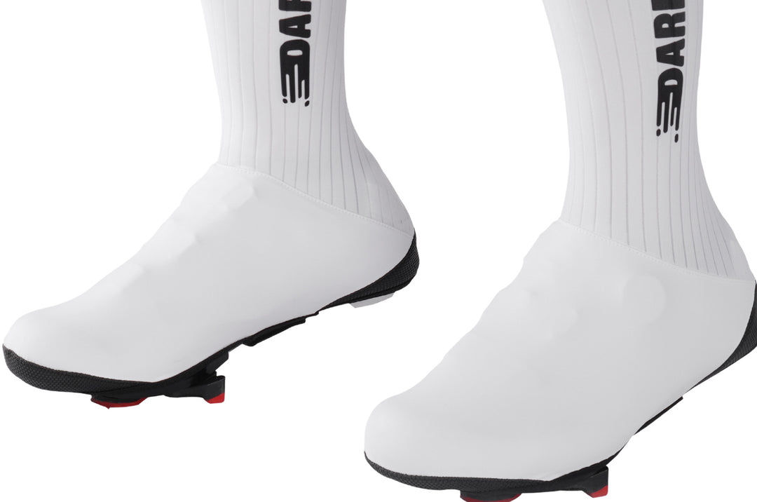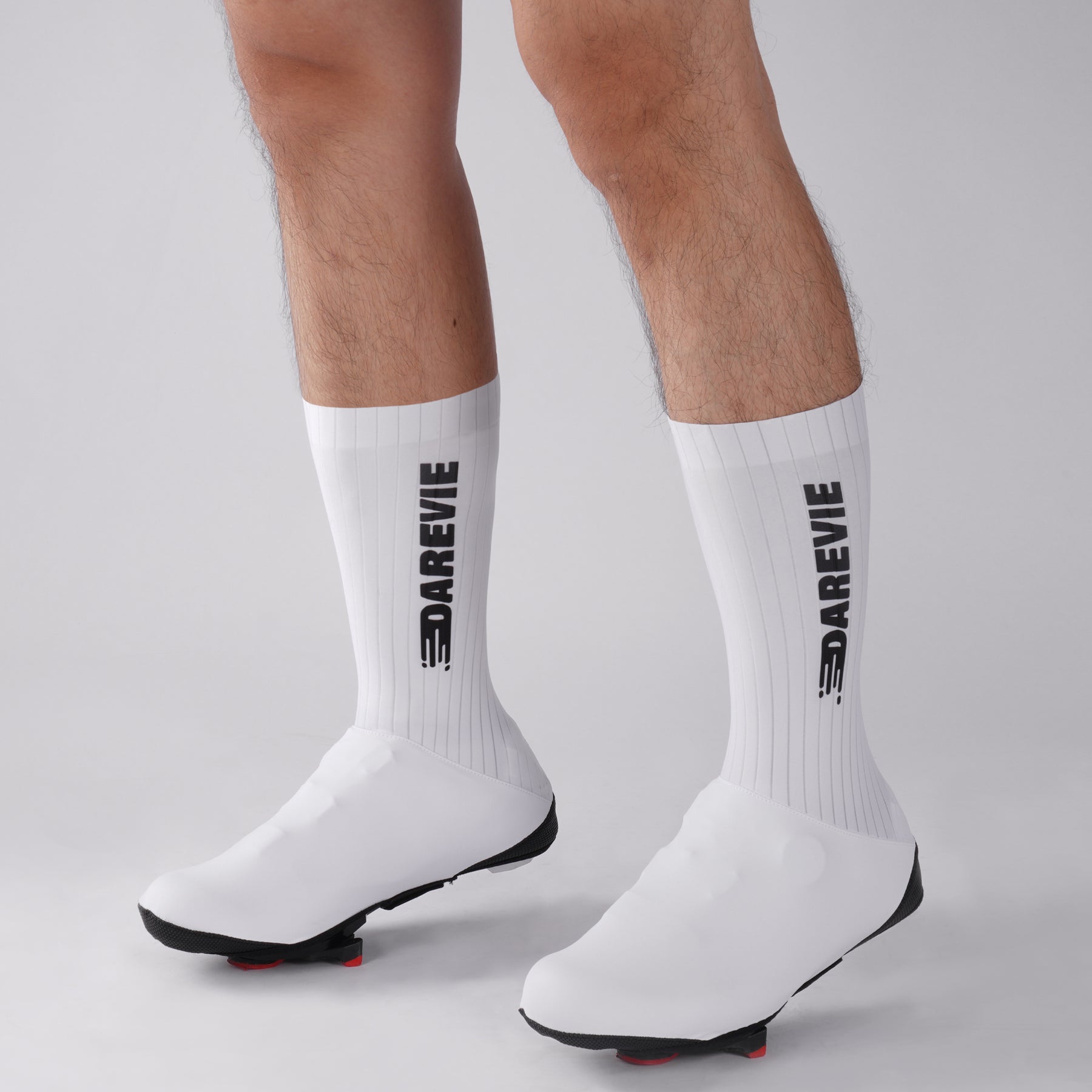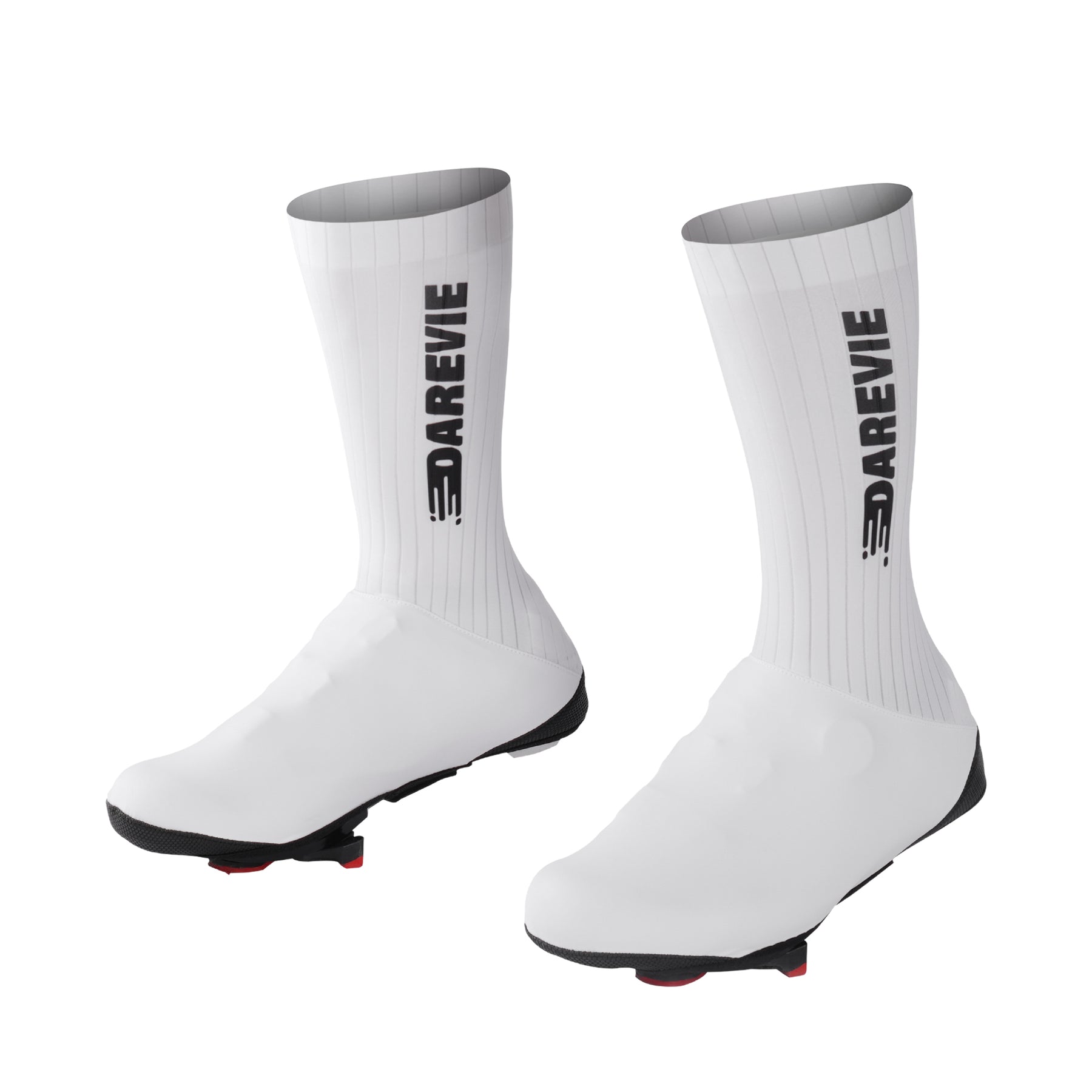 Darevie Aero Overshoes are designed for UCI racing, optimizing aerodynamic efficiency with a PU upper, aero calf fabric, and adjustable Velcro. Tested to save 3-5 watts, they offer a sculpted fit, reducing drag and enhancing speed for peak performance in every race.
